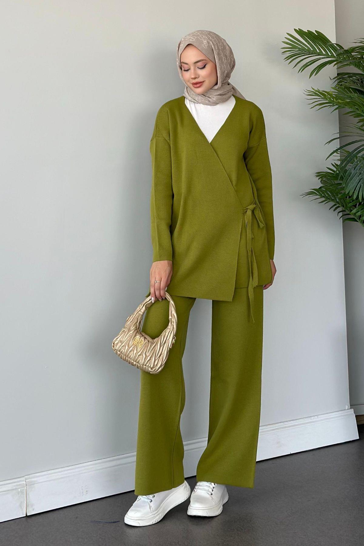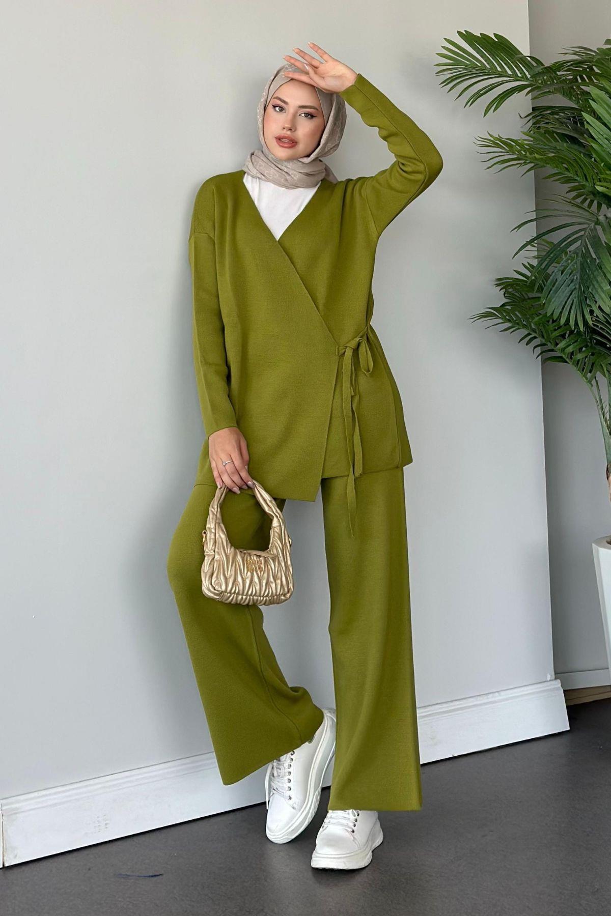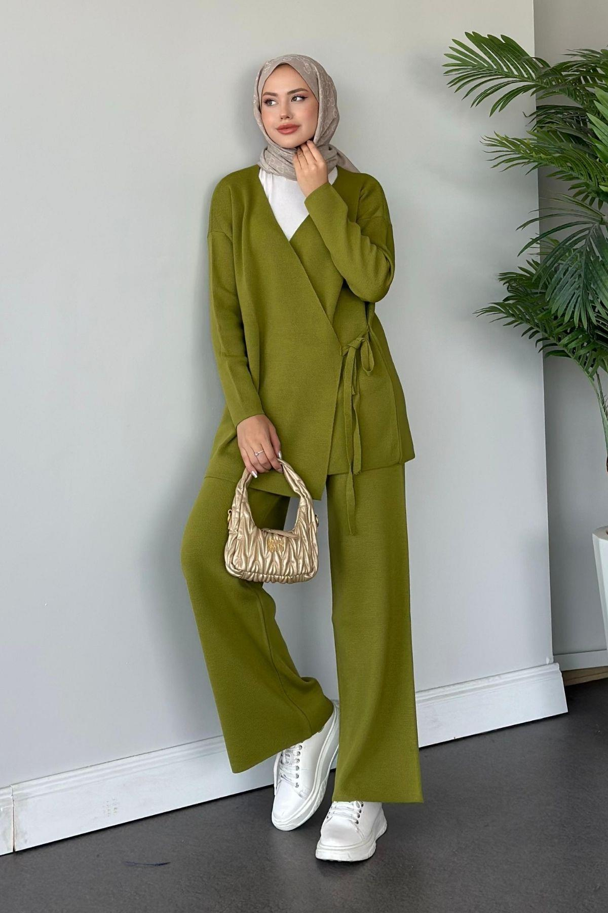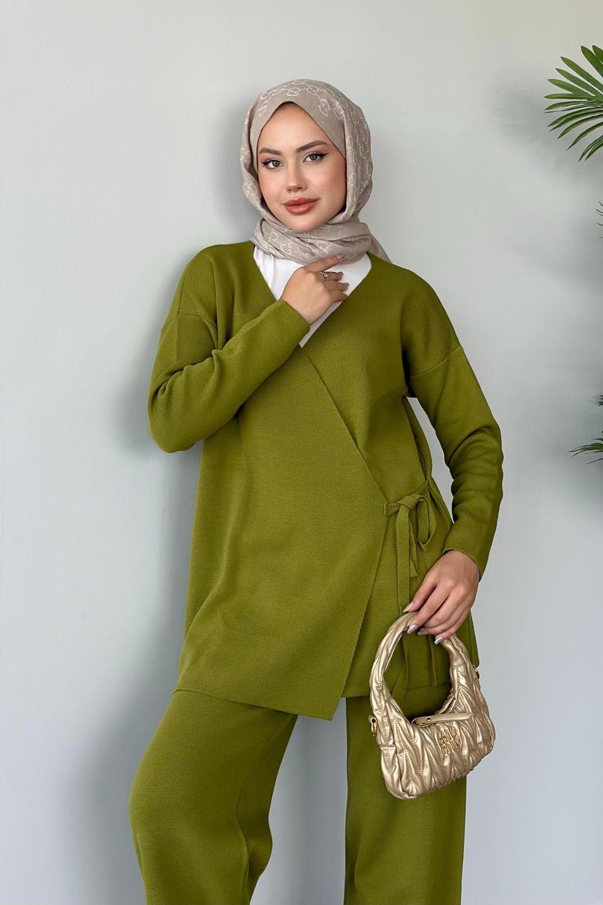 Maça İpli Triko Takım, önden bağlama detayı ve rahat kesimiyle hem günlük hem de özel davetlerde şık ve konforlu bir seçenek sunar. Yumuşak ve esnek triko kumaşı ile vücudu sarar, sıcak tutar ve her kullanımda şıklığınızı tamamlar.