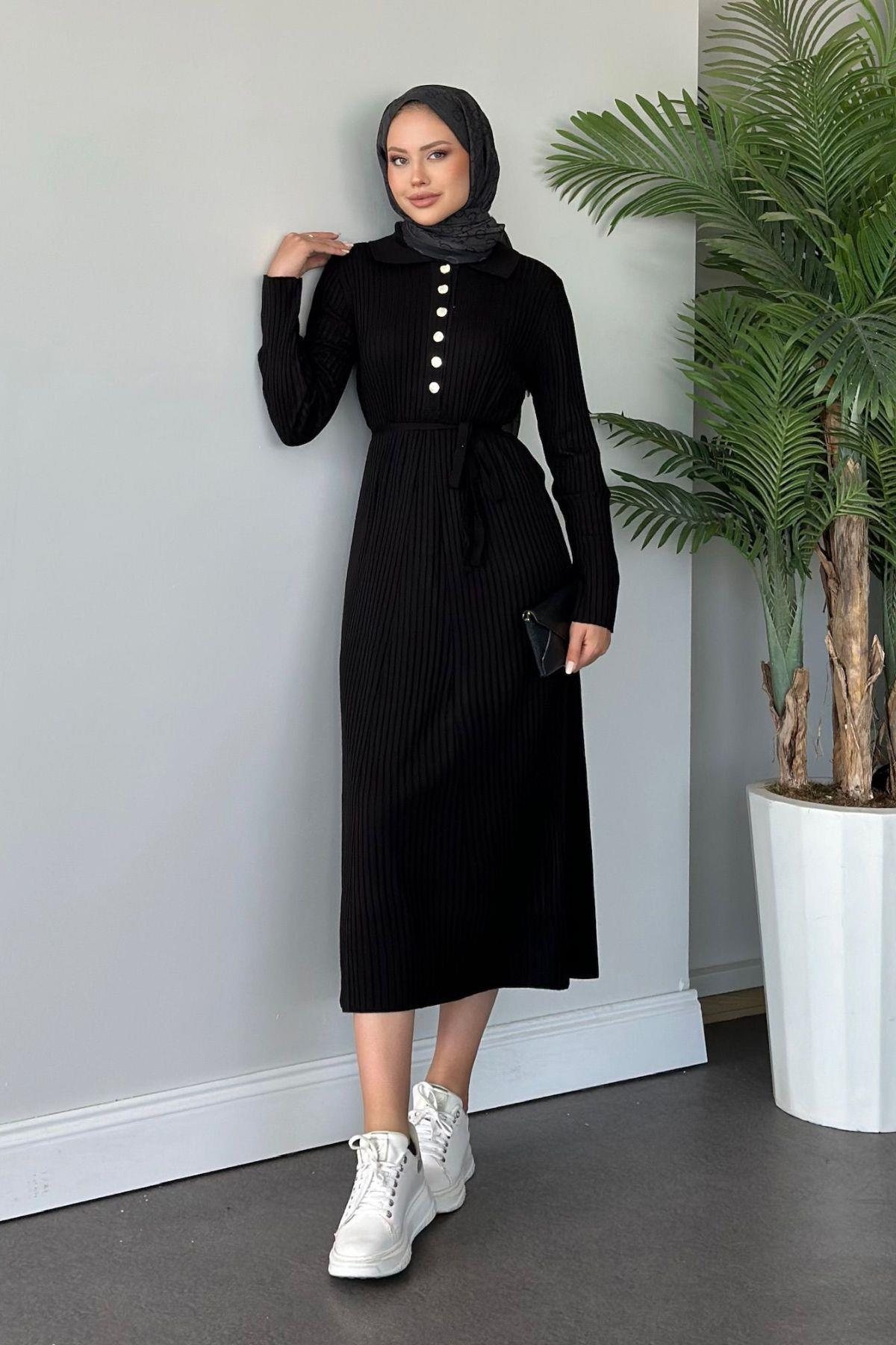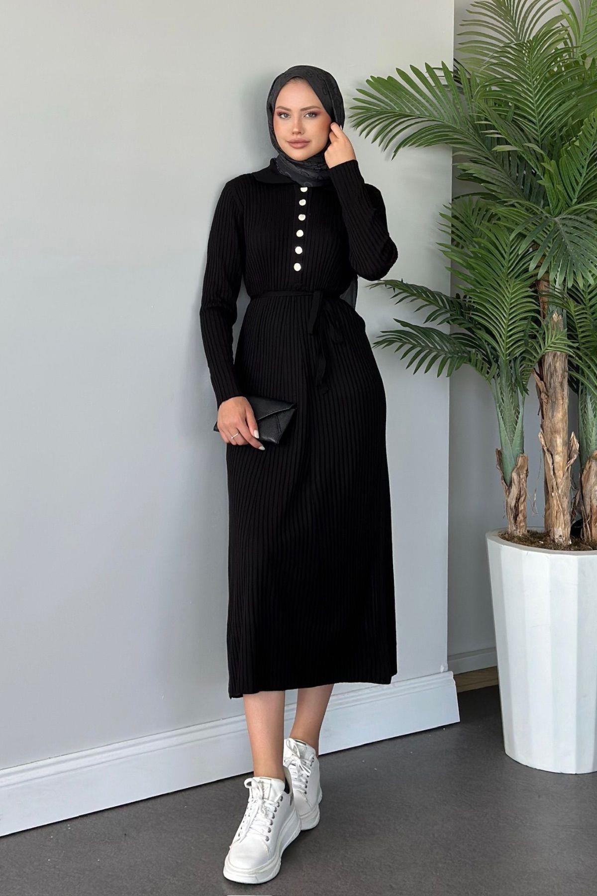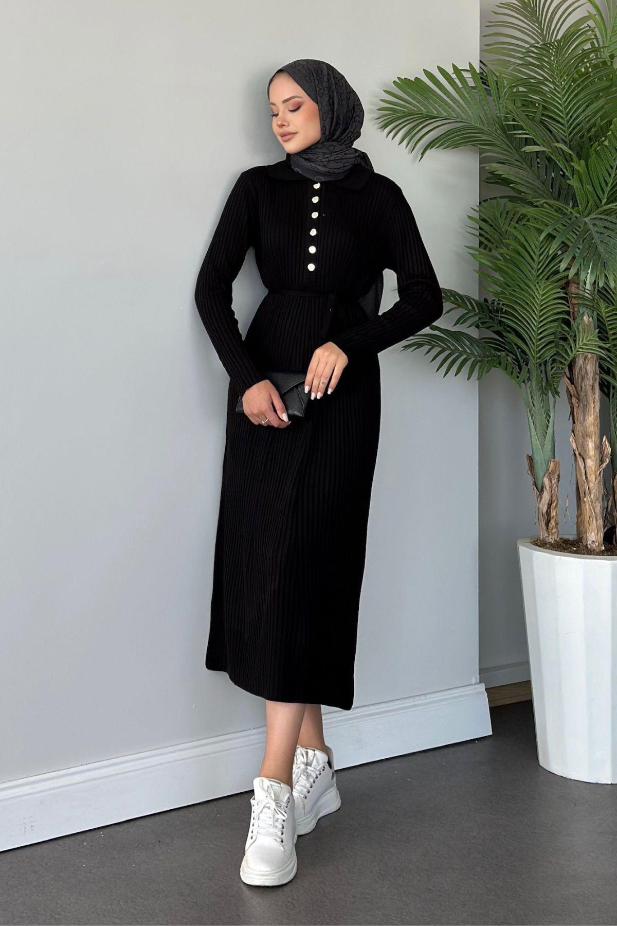 Madonna Triko Elbise, zamansız düğme şeridi ve yumuşak dokusu ile hem sade hem şık bir gardırop kurtarıcısı. Ofis stilinden hafta sonu kombinlerine kadar geniş kullanım alanı sunarken, triko yapısı hem sıcak tutar hem de hareket özgürlüğü sağlar. Kemer, uzun çizmeler veya sneaker ile farklı ruhlara kolayca uyarlanabilir.