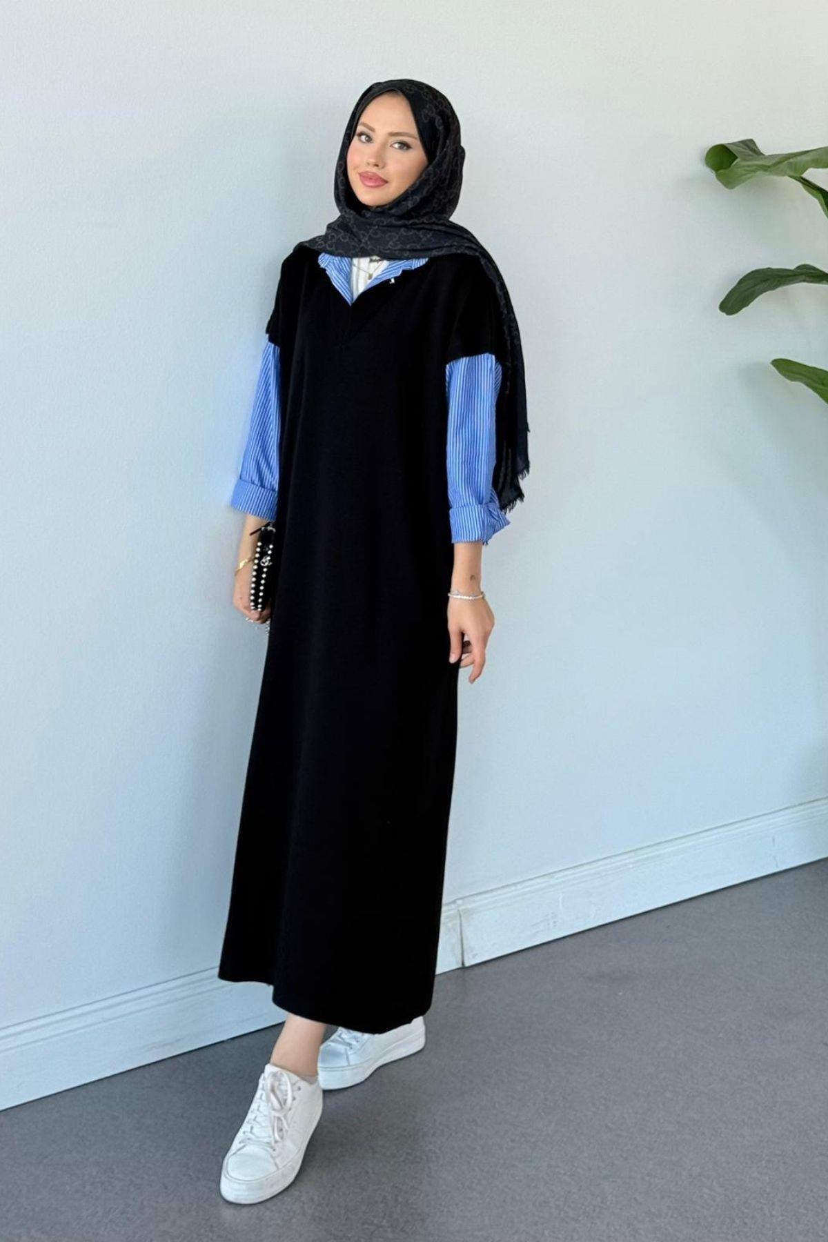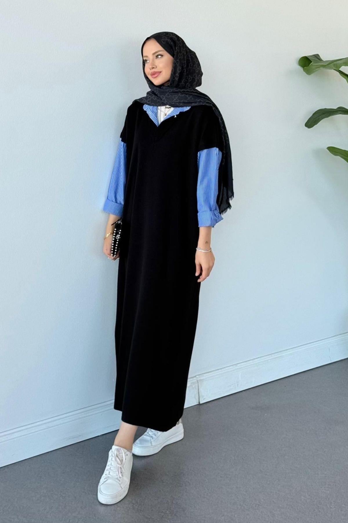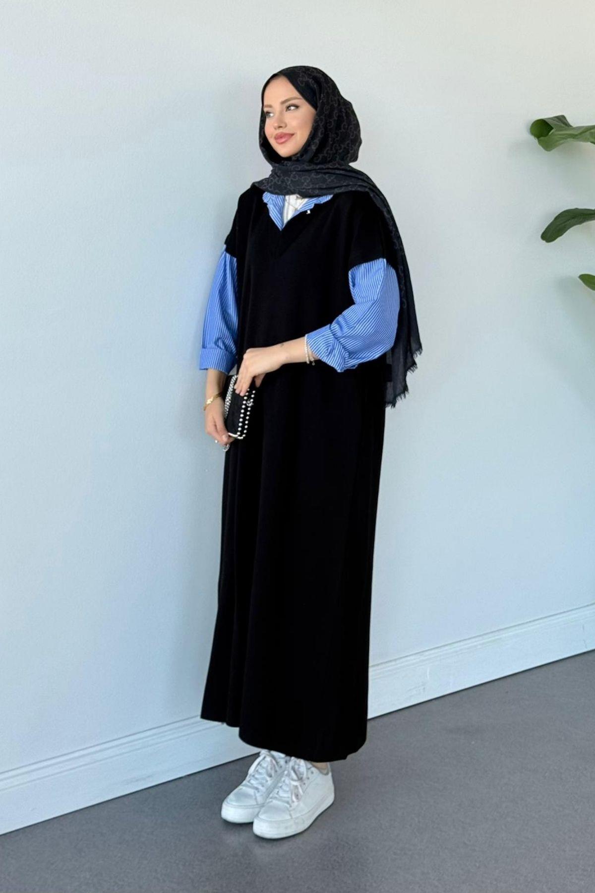 Muadil Elbise, poplin kol ve yaka detayları ile şıklığı, triko kumaşı ile ise konforu bir araya getiriyor. Modern ve zarif tasarımı ile hem günlük hayatta hem de özel davetlerde şıklığınızı tamamlayacak ideal bir parça.