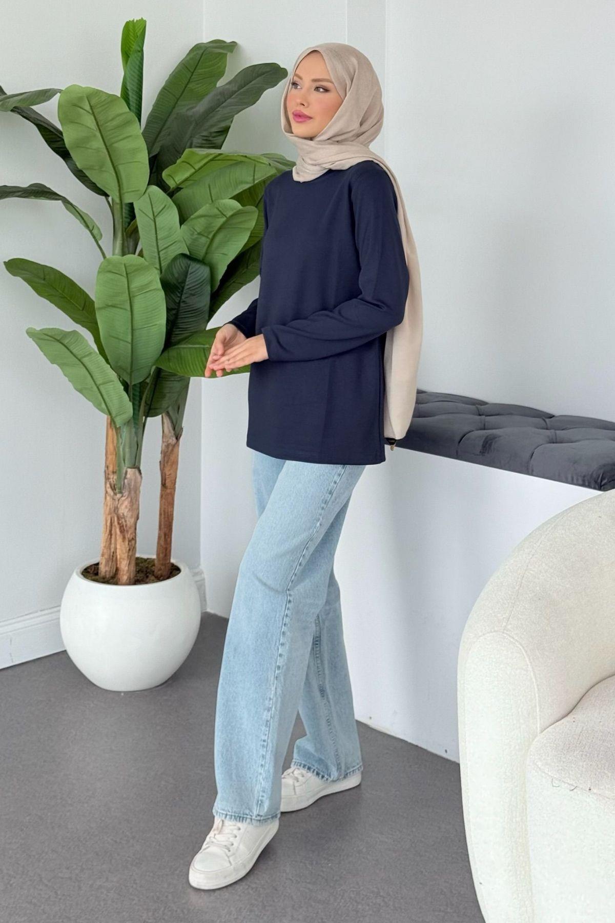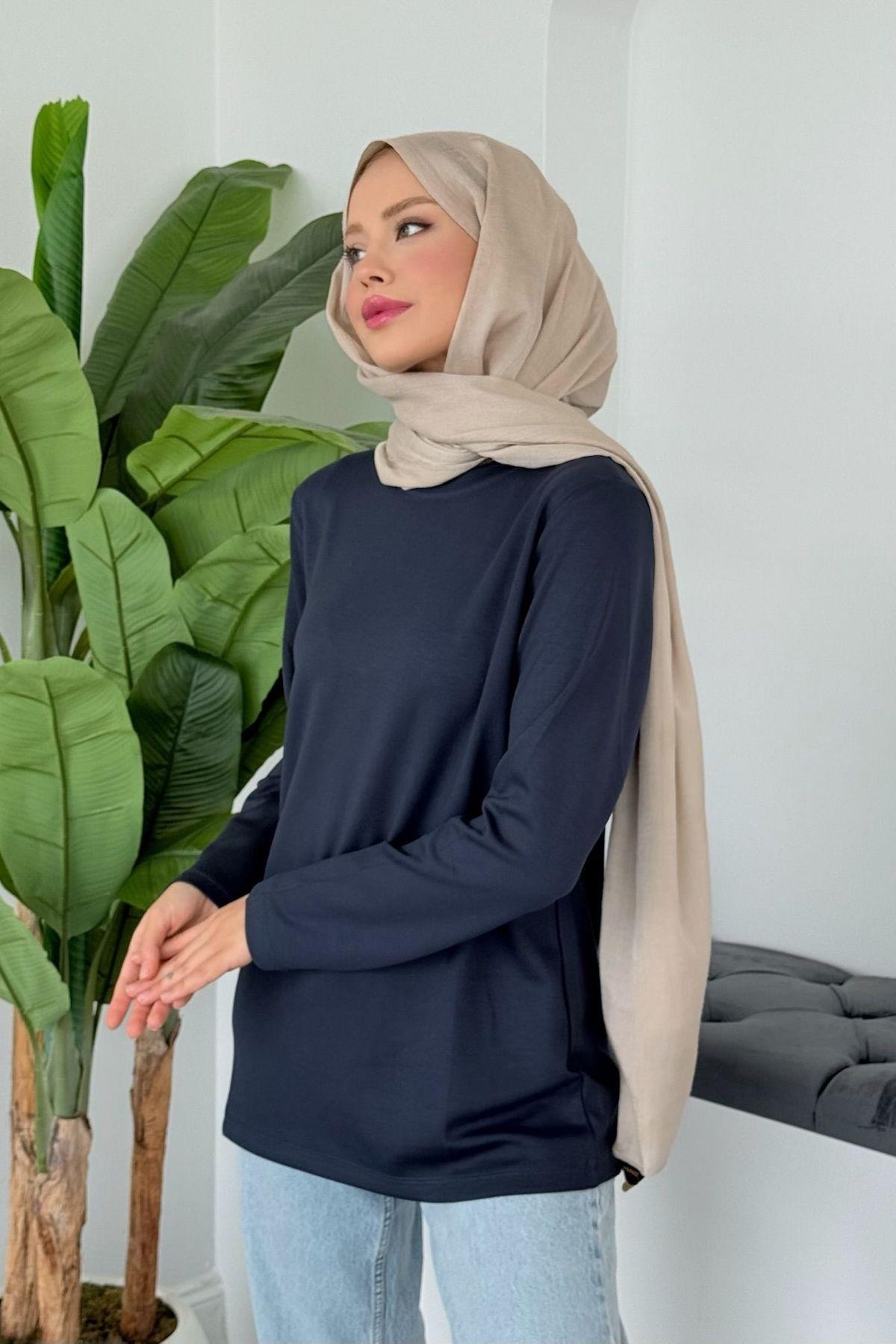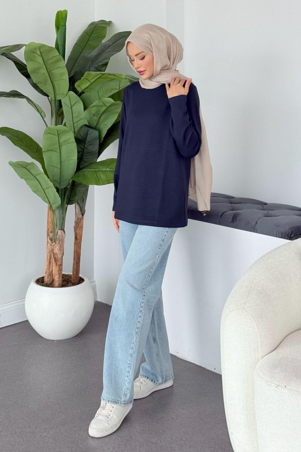 Pamuklu Uzun Kollu İçlik Lacivert (6053)
