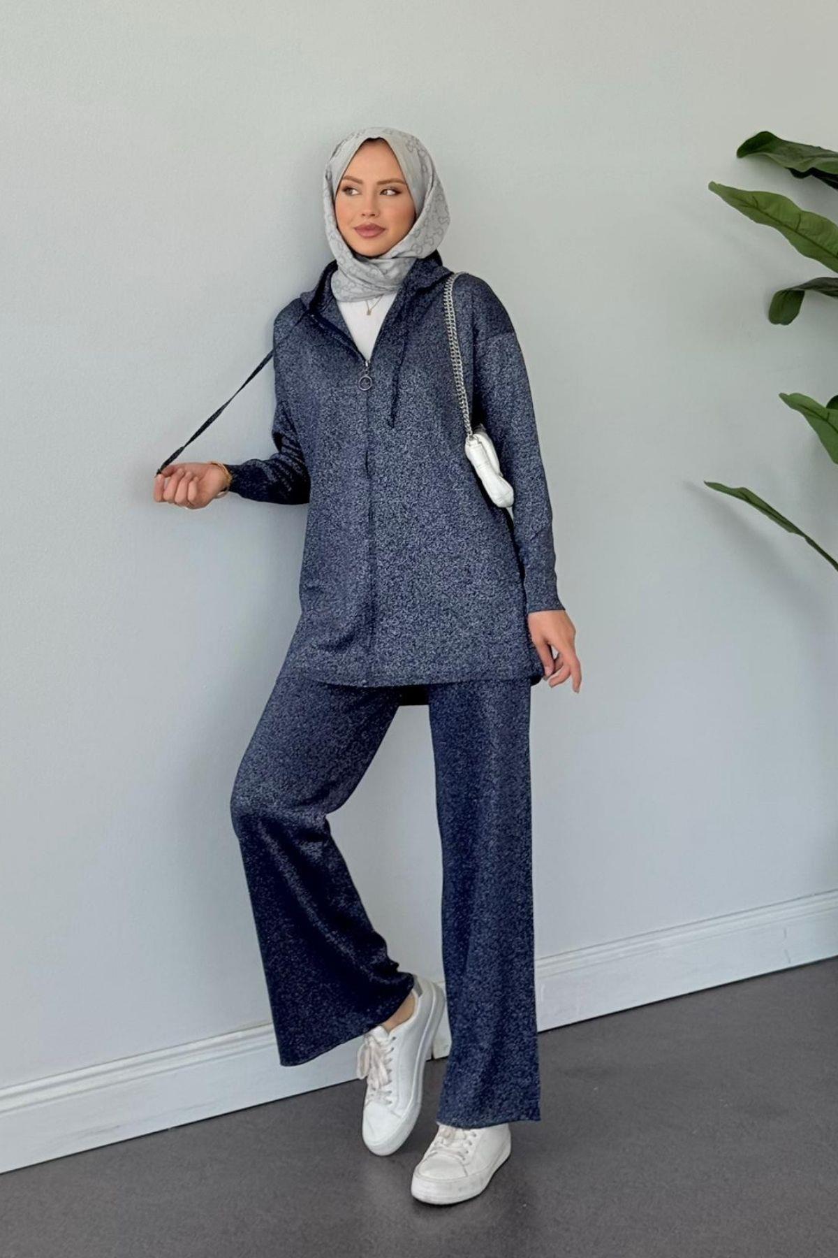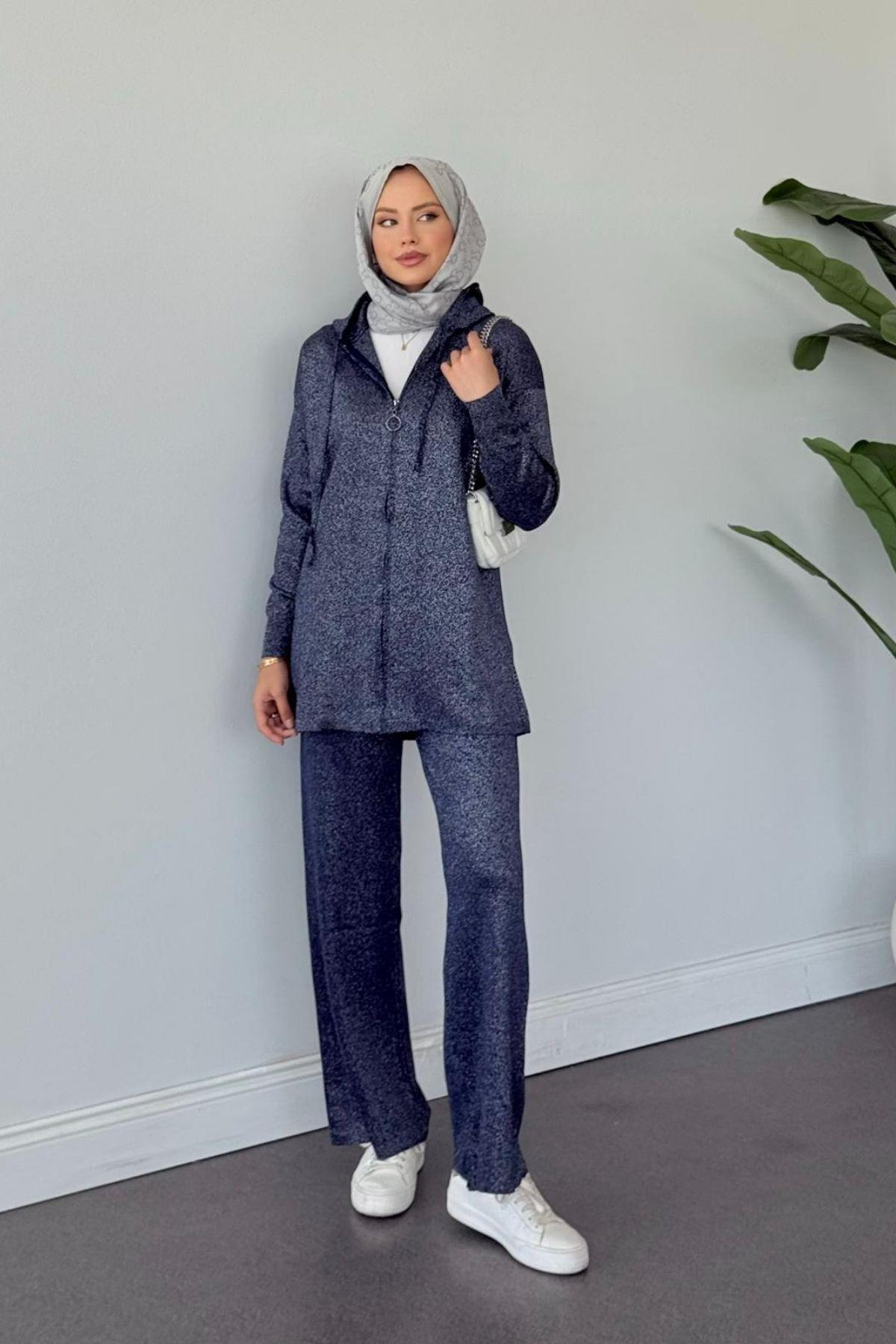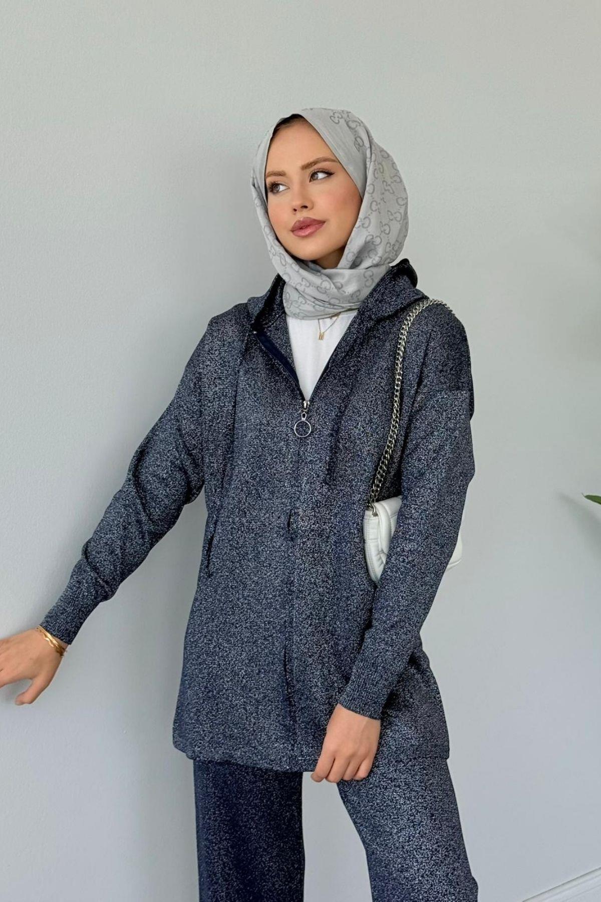 EDİTÖR YORUMU Roly Premium Takım, fermuarlı ve kapşonlu üstüyle hem modern hem de rahat bir kullanım sağlar. Parlak simli triko kumaşı ile şıklık ve konforu bir arada sunar.