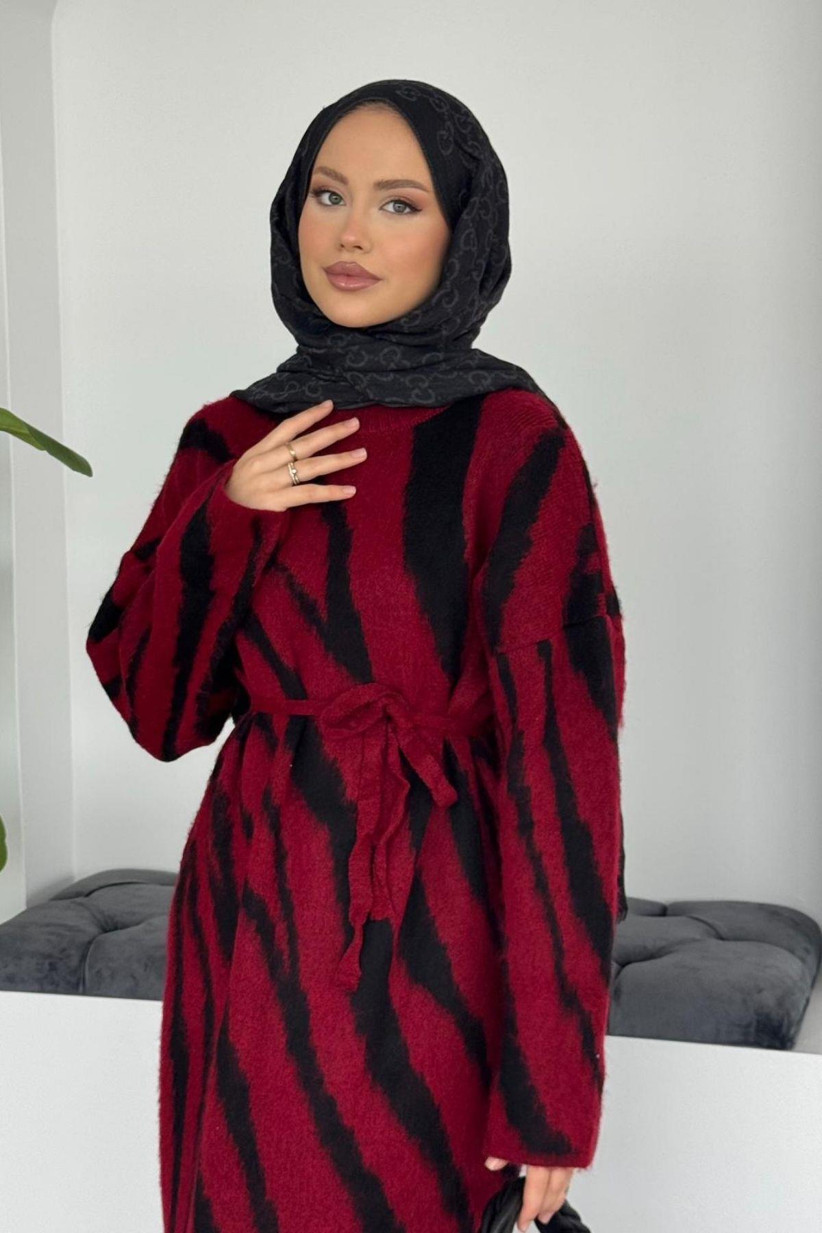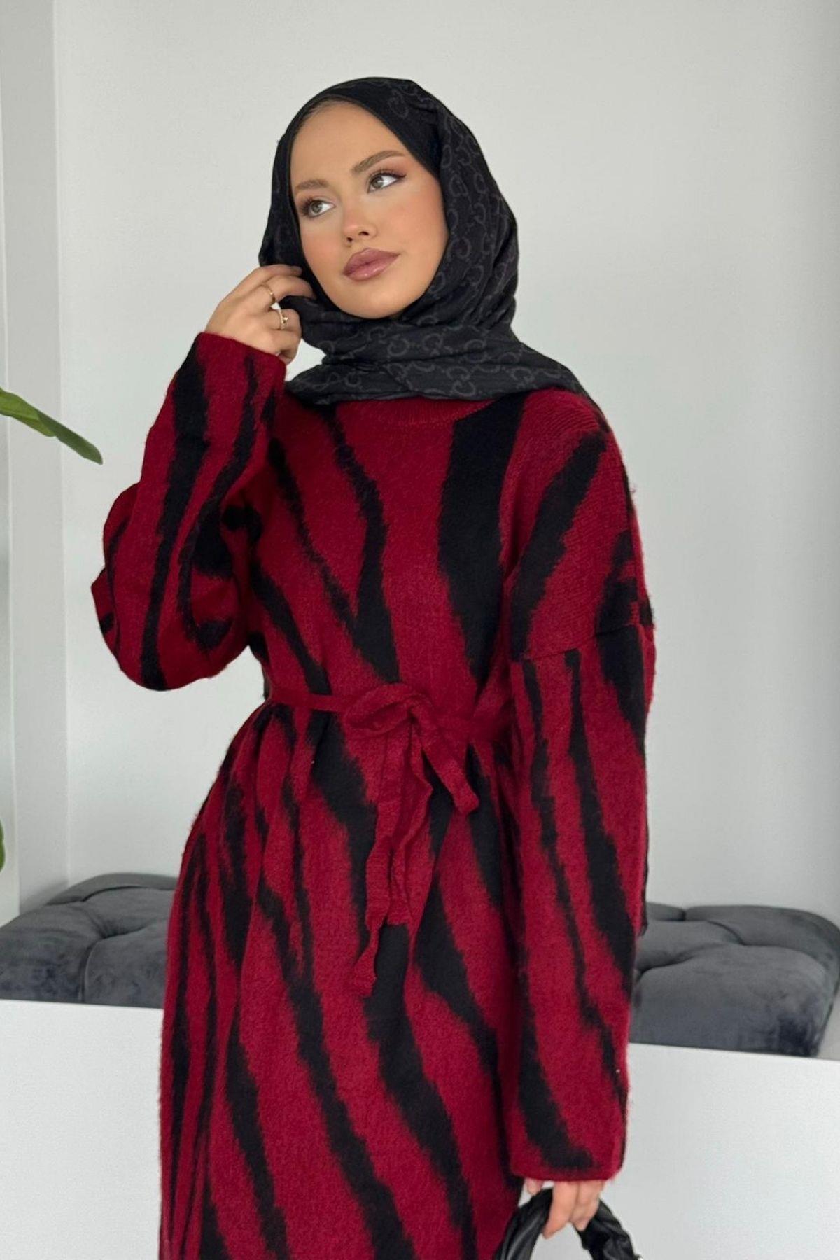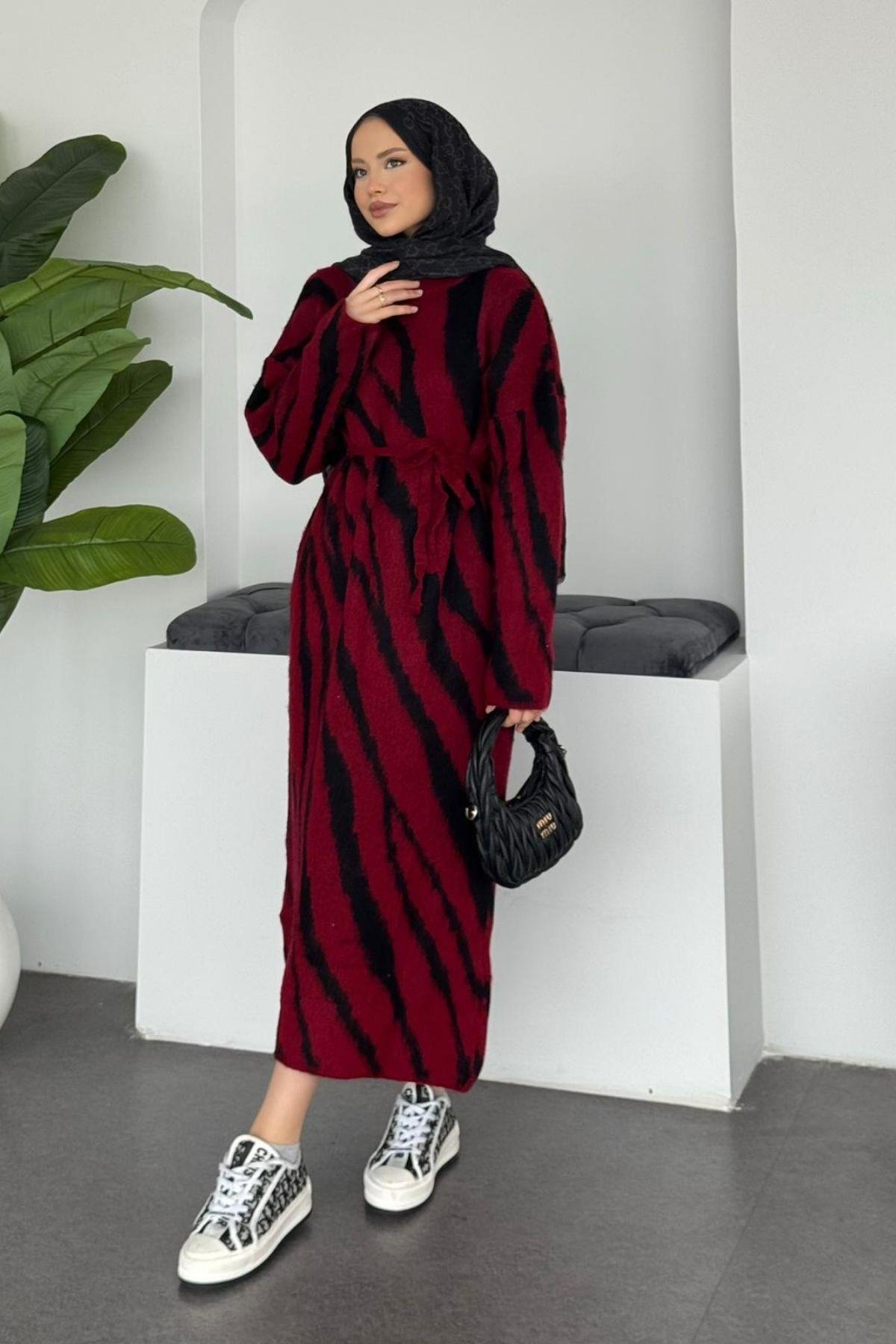 Safari zebra deseni ile dikkat çeken bu elbise, günlük kullanımda hem şıklığı hem de konforu bir arada sunuyor. Yumuşak triko kumaş yapısı sayesinde tüm gün rahatlıkla giyilebilirken, seyar kuşak detayı ile bedeninize mükemmel uyum sağlıyor. Özel günlerden günlük kullanıma kadar geniş bir yelpazede kombinlenebilecek çok yönlü bir parça.