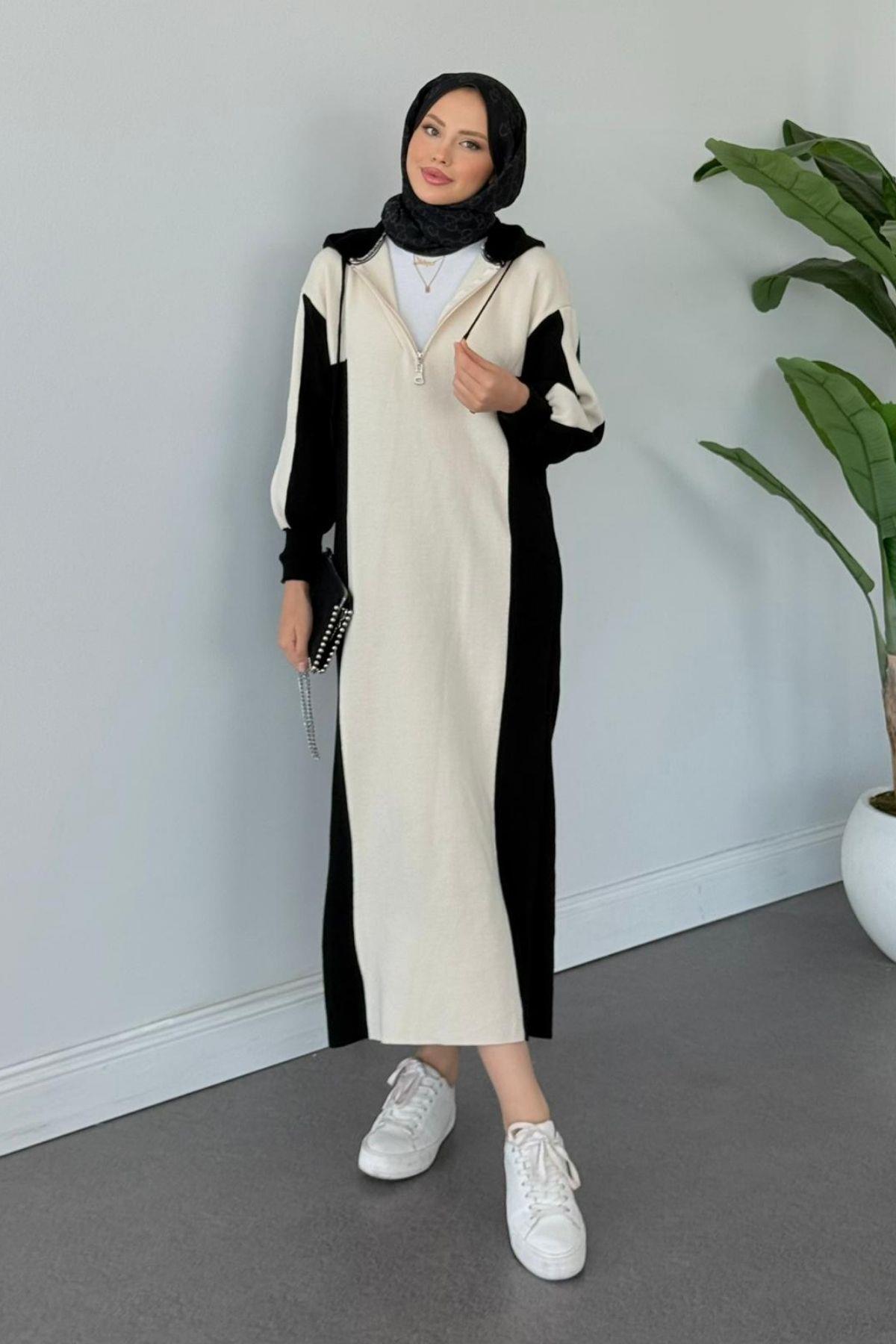 Samira Kapşonlu Spor Elbise, fermuar ve kapşon detayı ile spor şıklığı bir araya getirirken, triko kumaşı sayesinde gün boyu konfor sunar. İç göstermez ve tiftiklenme yapmayan yapısı ile uzun süreli kullanım için idealdir.