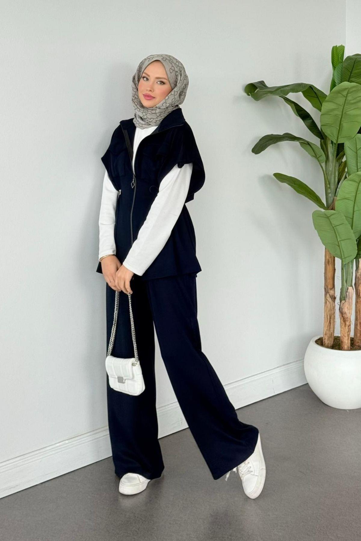 Somre Pamuklu Yelekli Takım Lacivert (20212)