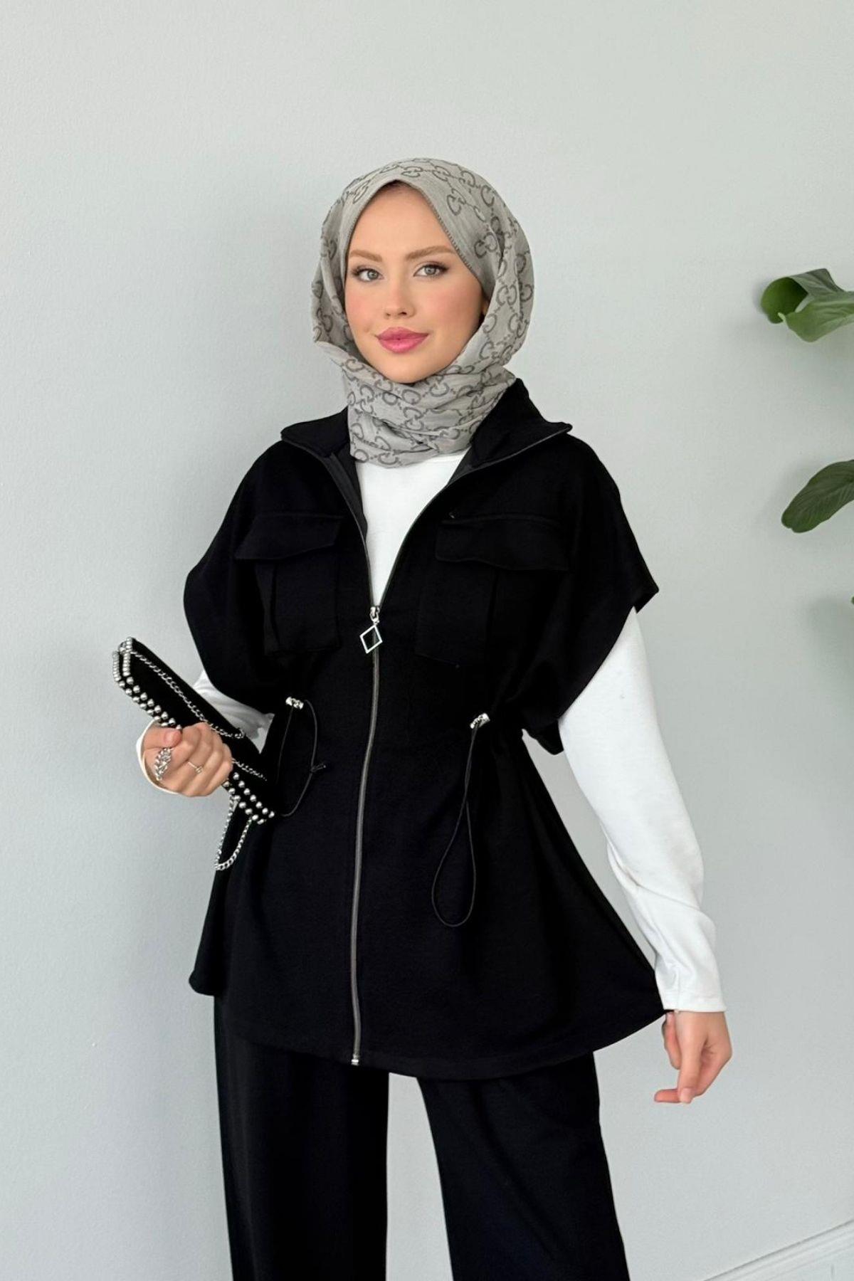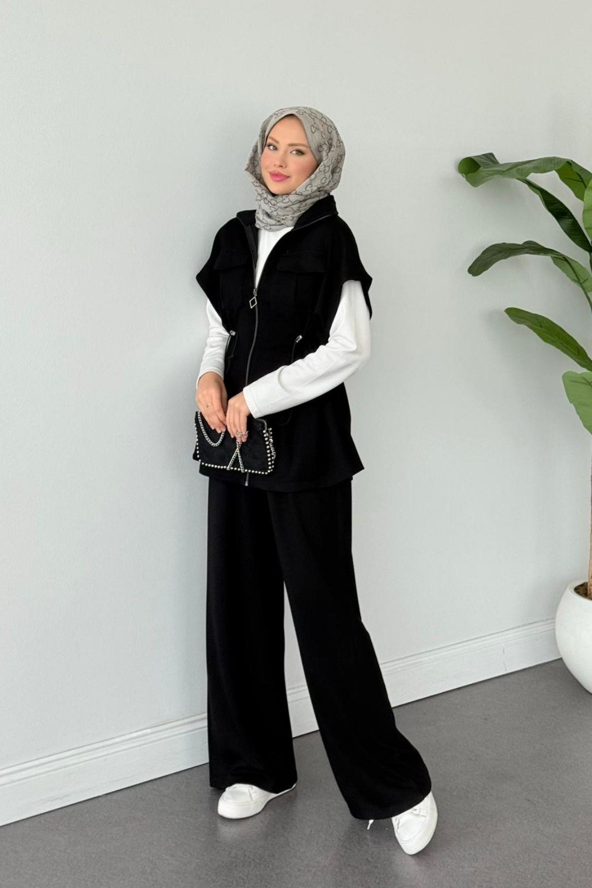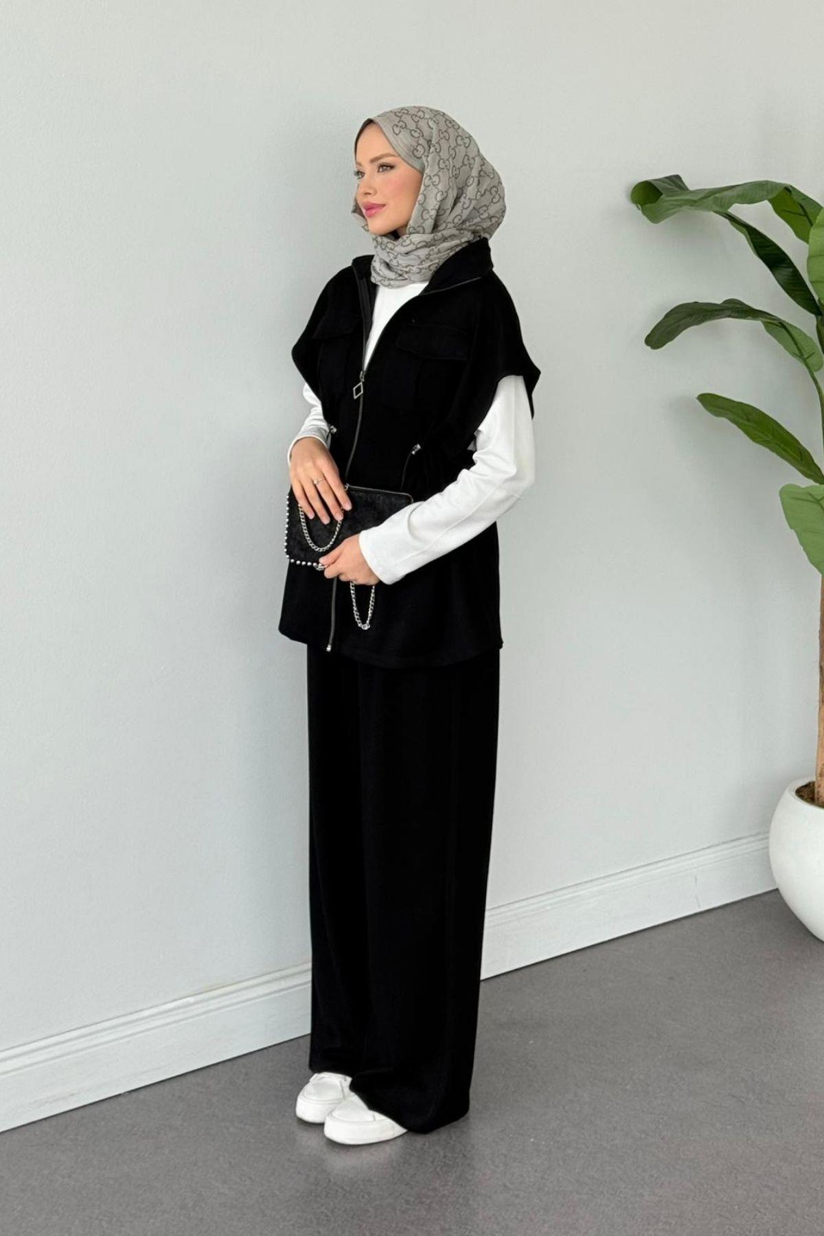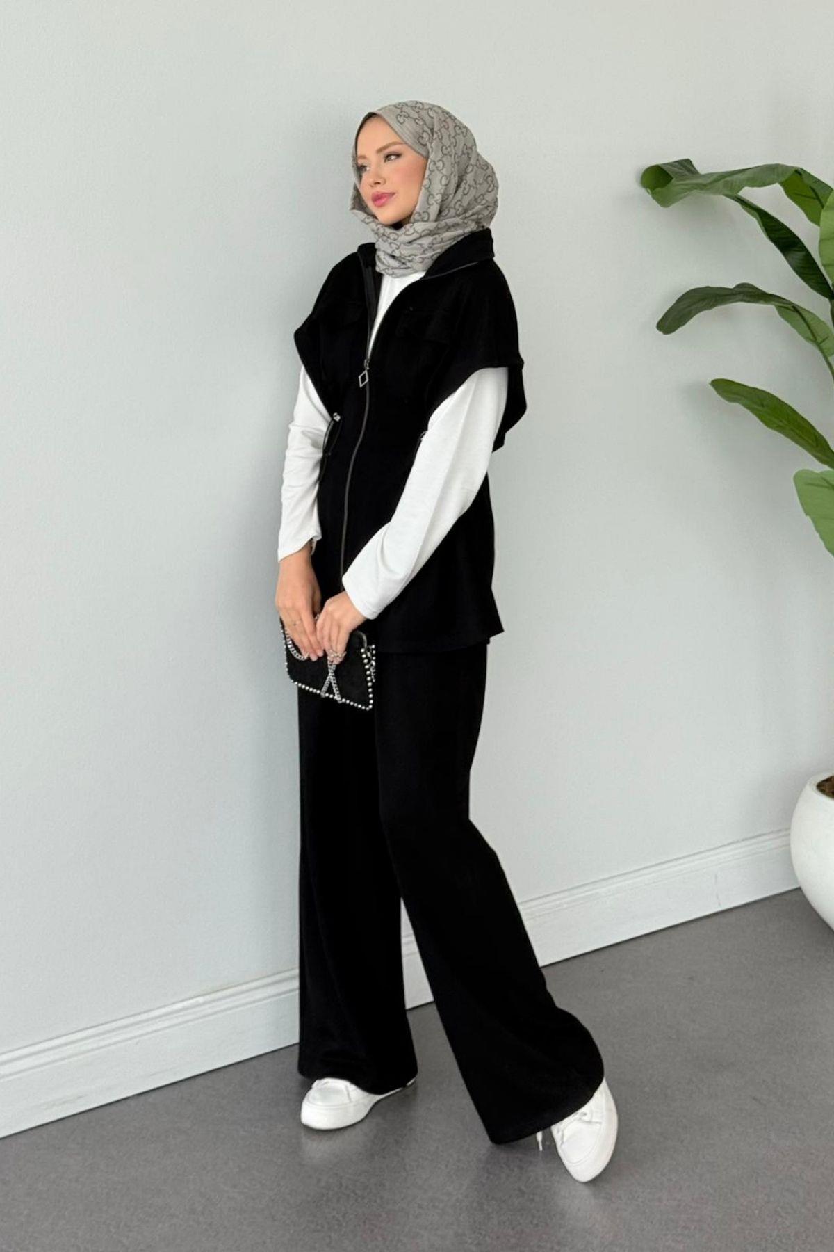 Somre Pamuklu Yelekli Takım Siyah (20212)