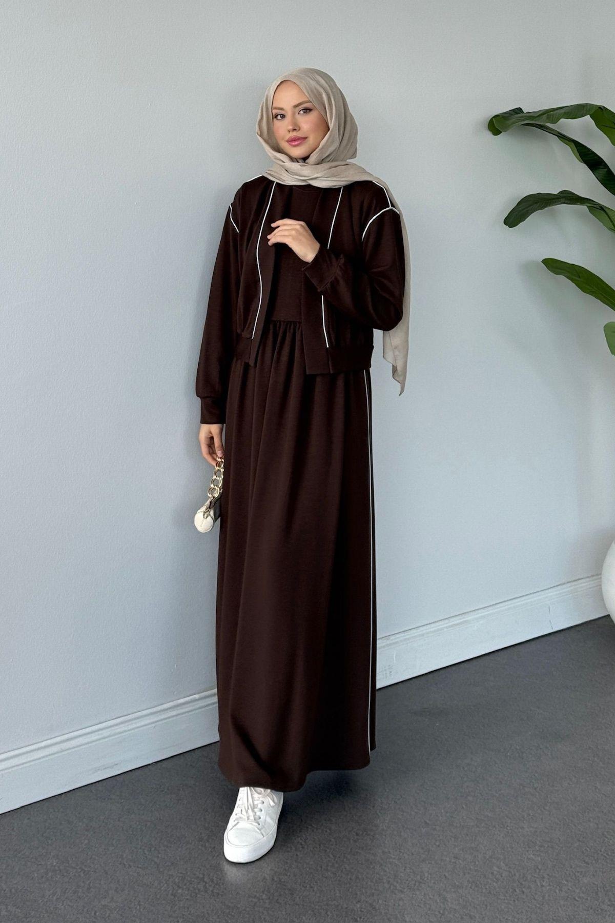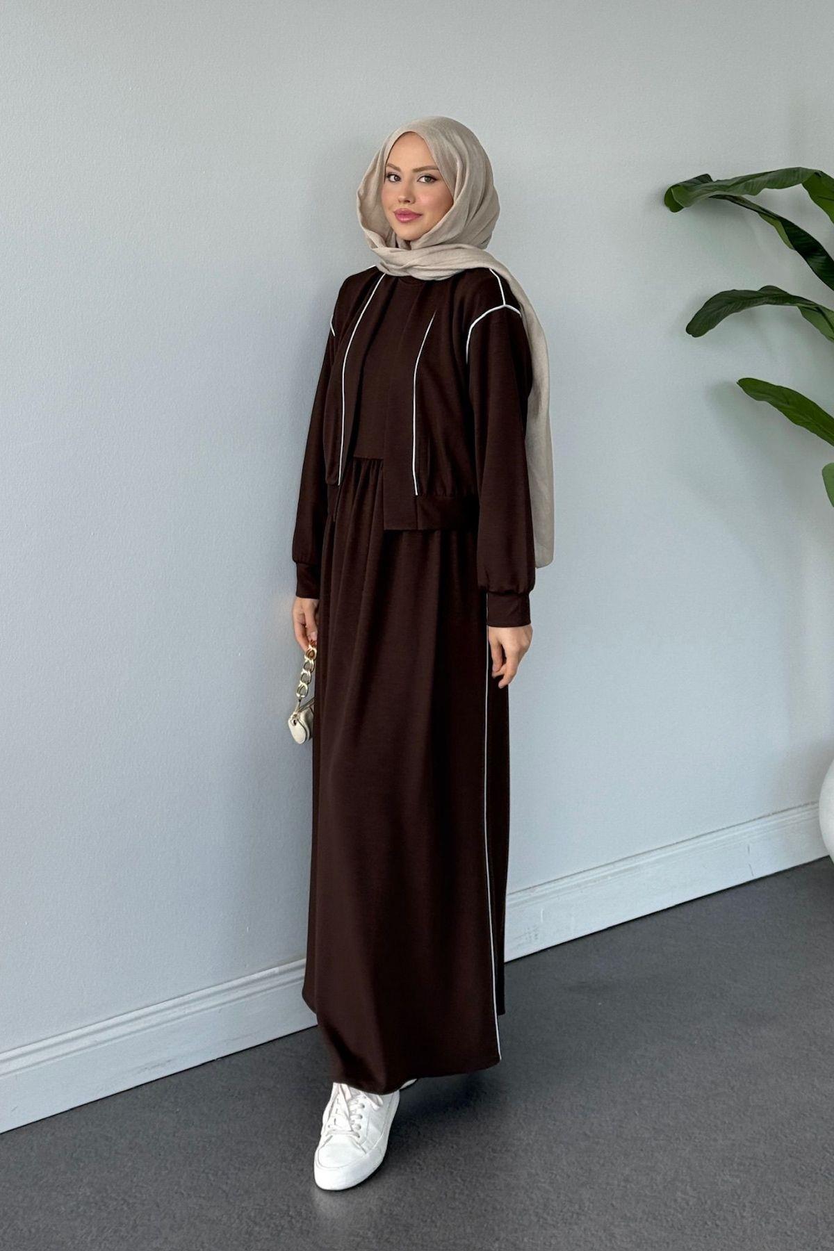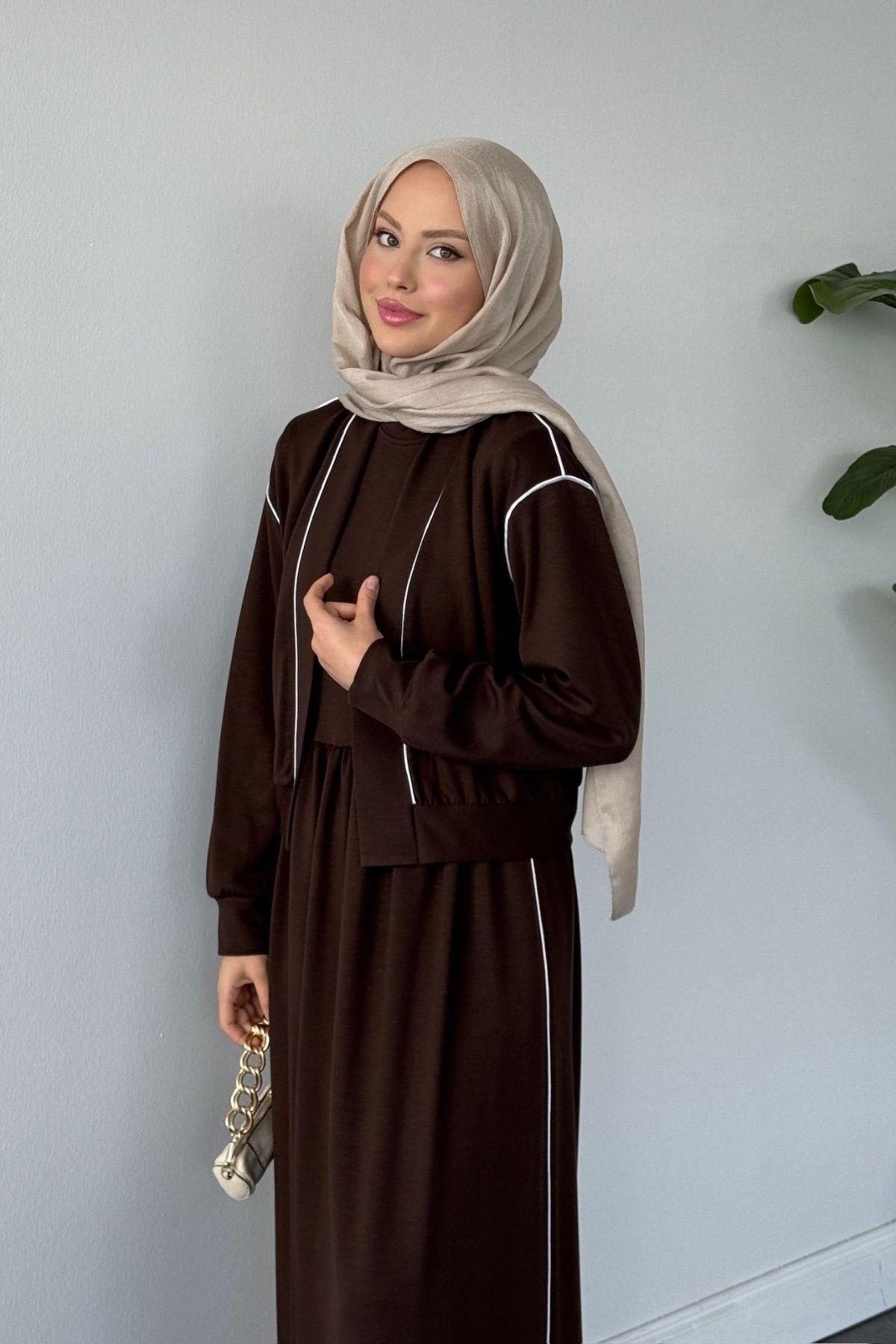 İç elbiseyi jile formundadır. Ürün kesim kısmlarında biye detayı mevcut.